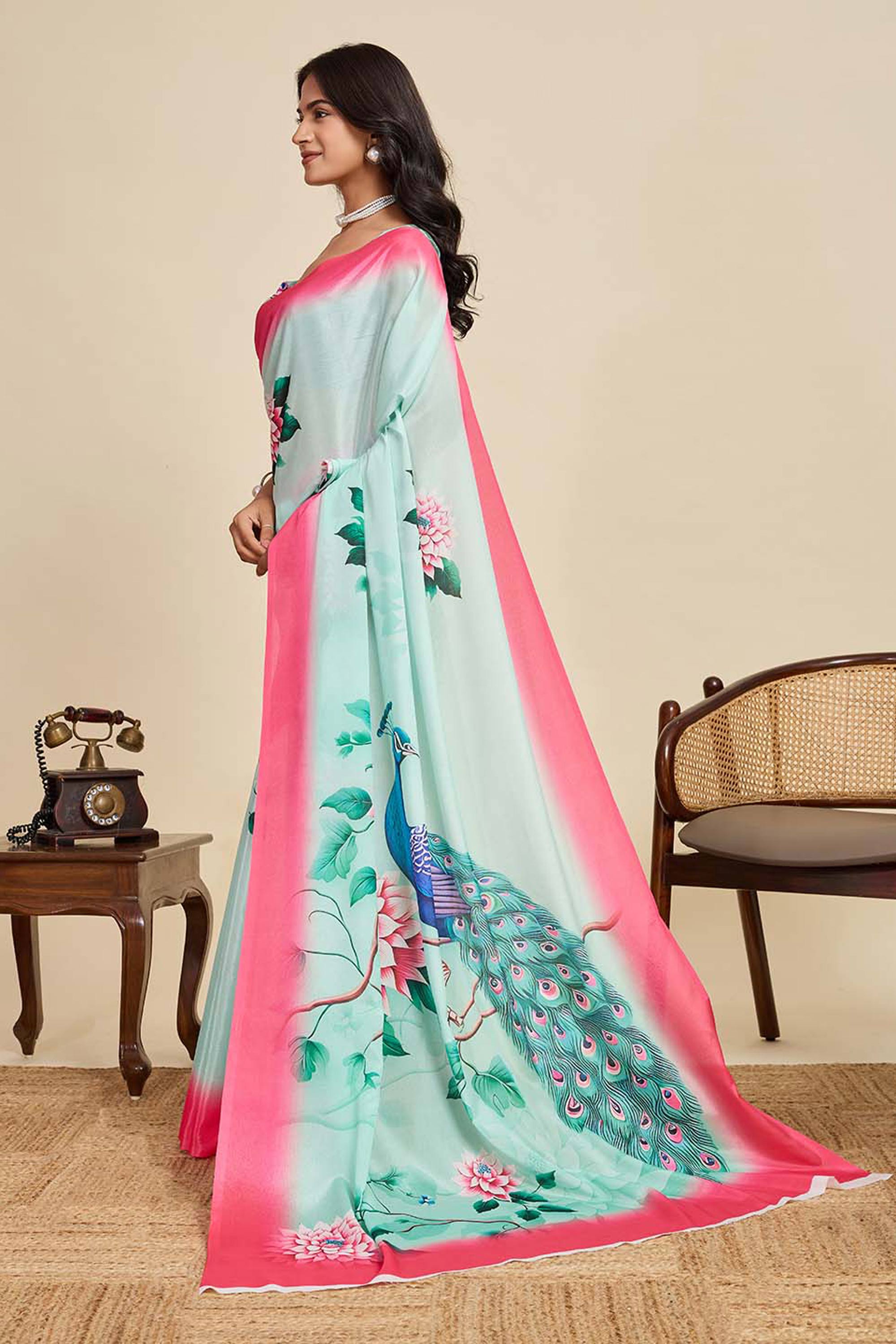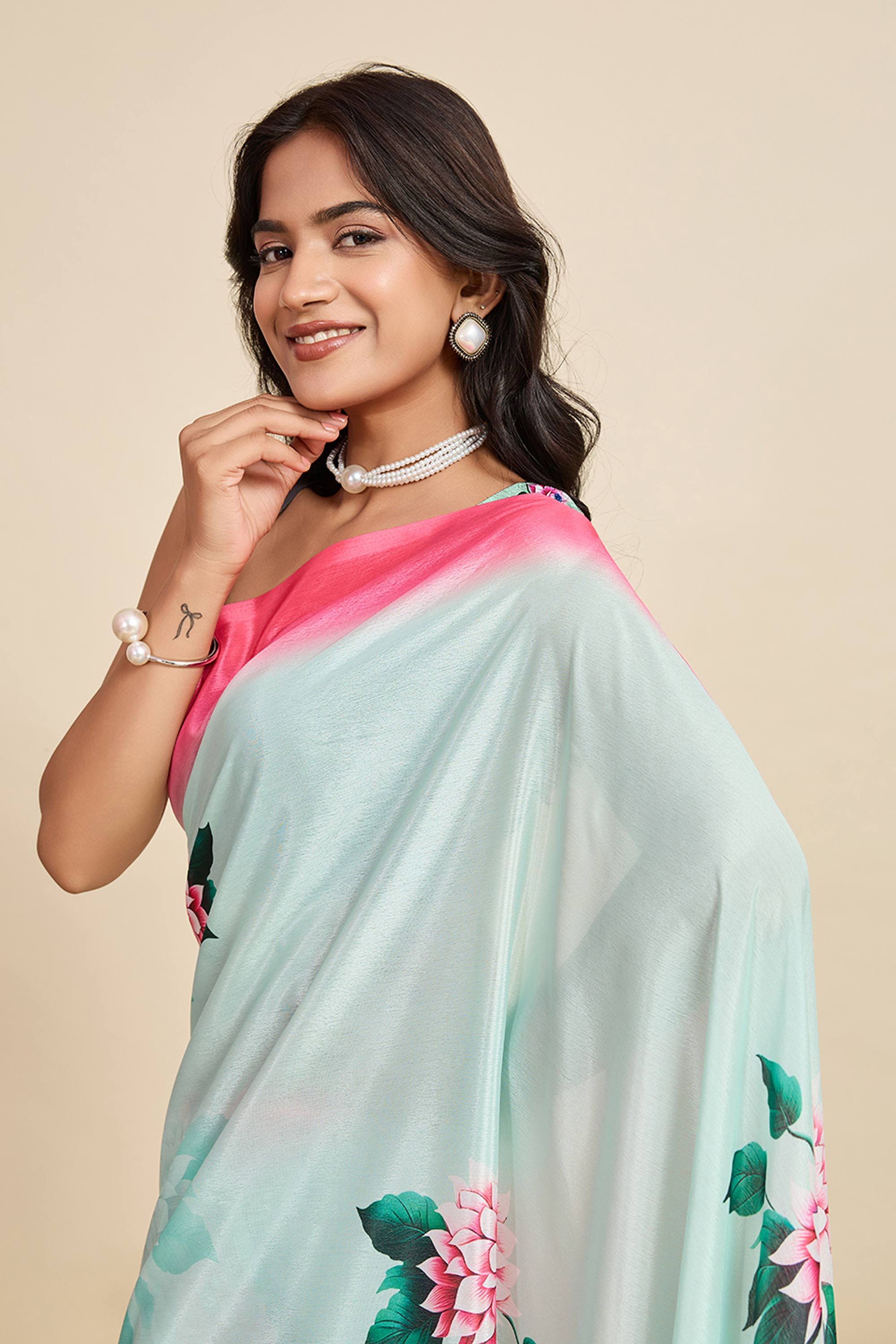 Chinon Fabric Light Cyan Saree For Casual Wear