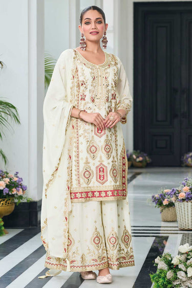 Chinon Fabric White Color Excellent Readymade Palazzo Suit