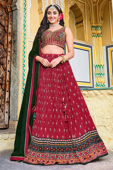 Chinon Maroon Readymade Lehenga Choli