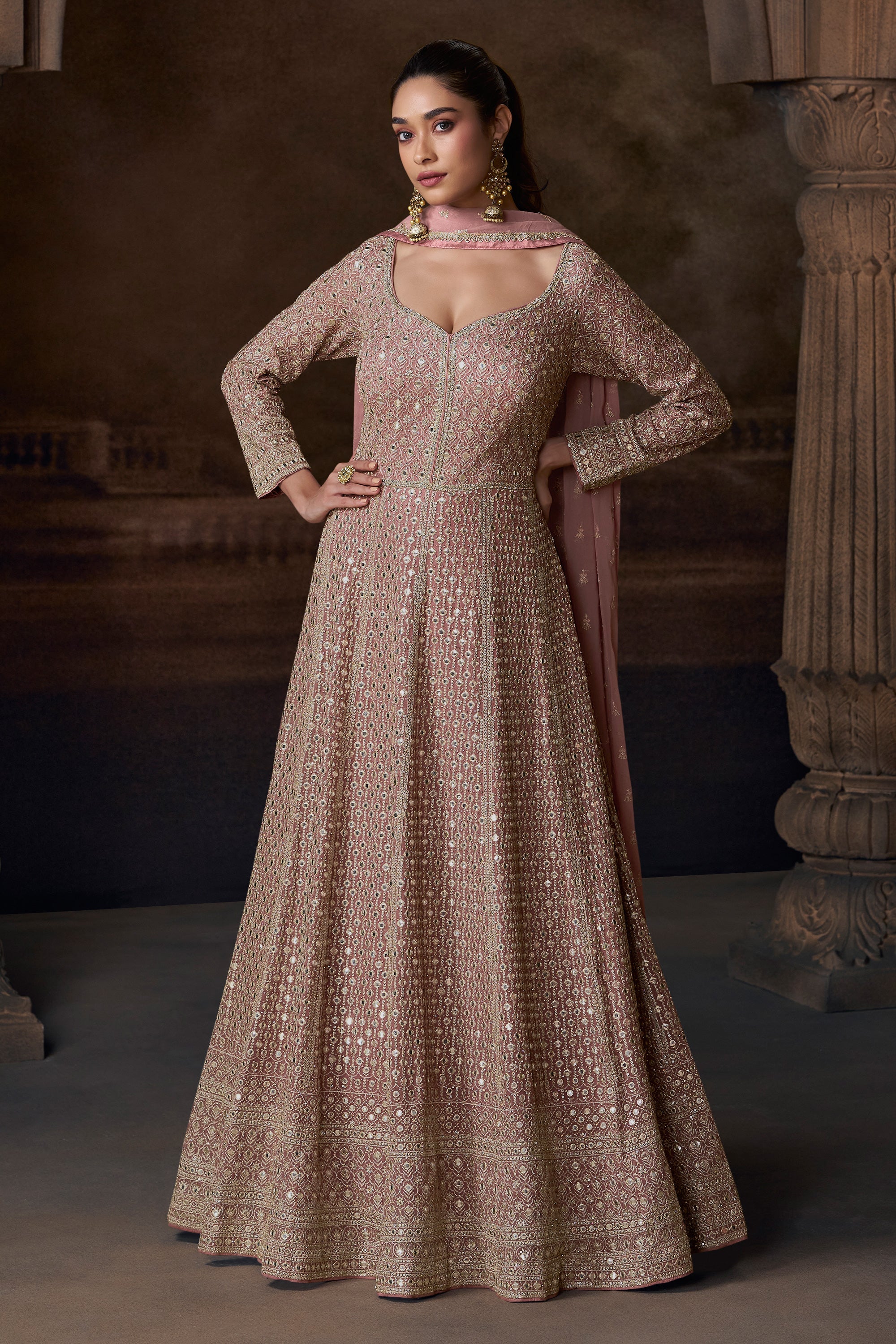 Embrace exquisite craftsmanship with the Reach Color Embroidered Chinon Silk Readymade Long Anarkali Style Gown With Dupatta. Fashioned from premium Chinon silk, this Anarkali gown showcases detailed embroidery, highlighting a fusion of tradition and modern elegance. The long, flowing silhouette enhances your stature, and the readymade fit offers ultimate convenience. Paired with a coordinating dupatta, this outfit is a flawless choice for any special occasion. Elevate your wardrobe with this enchanting piece of fashion.