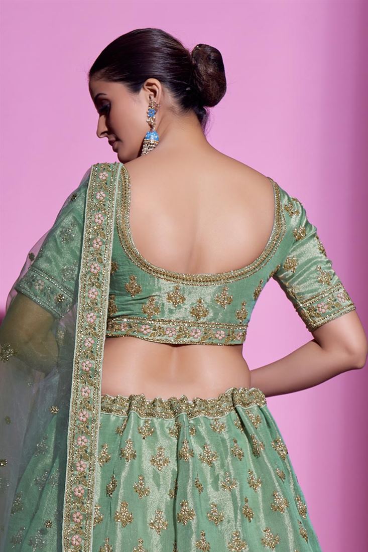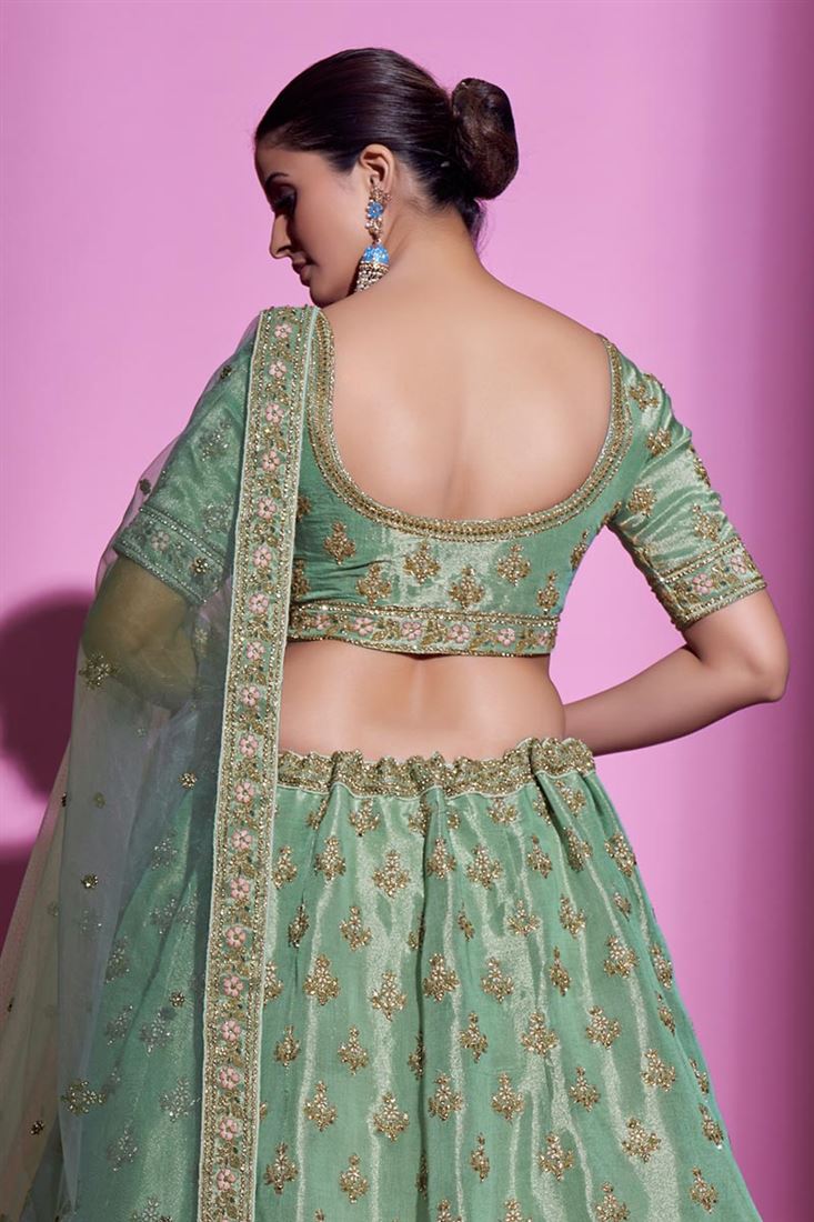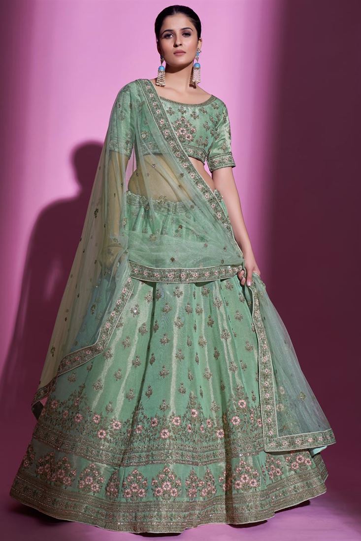 Classic Art Silk Fabric Wedding Wear Lehenga Choli in Sea Green Color