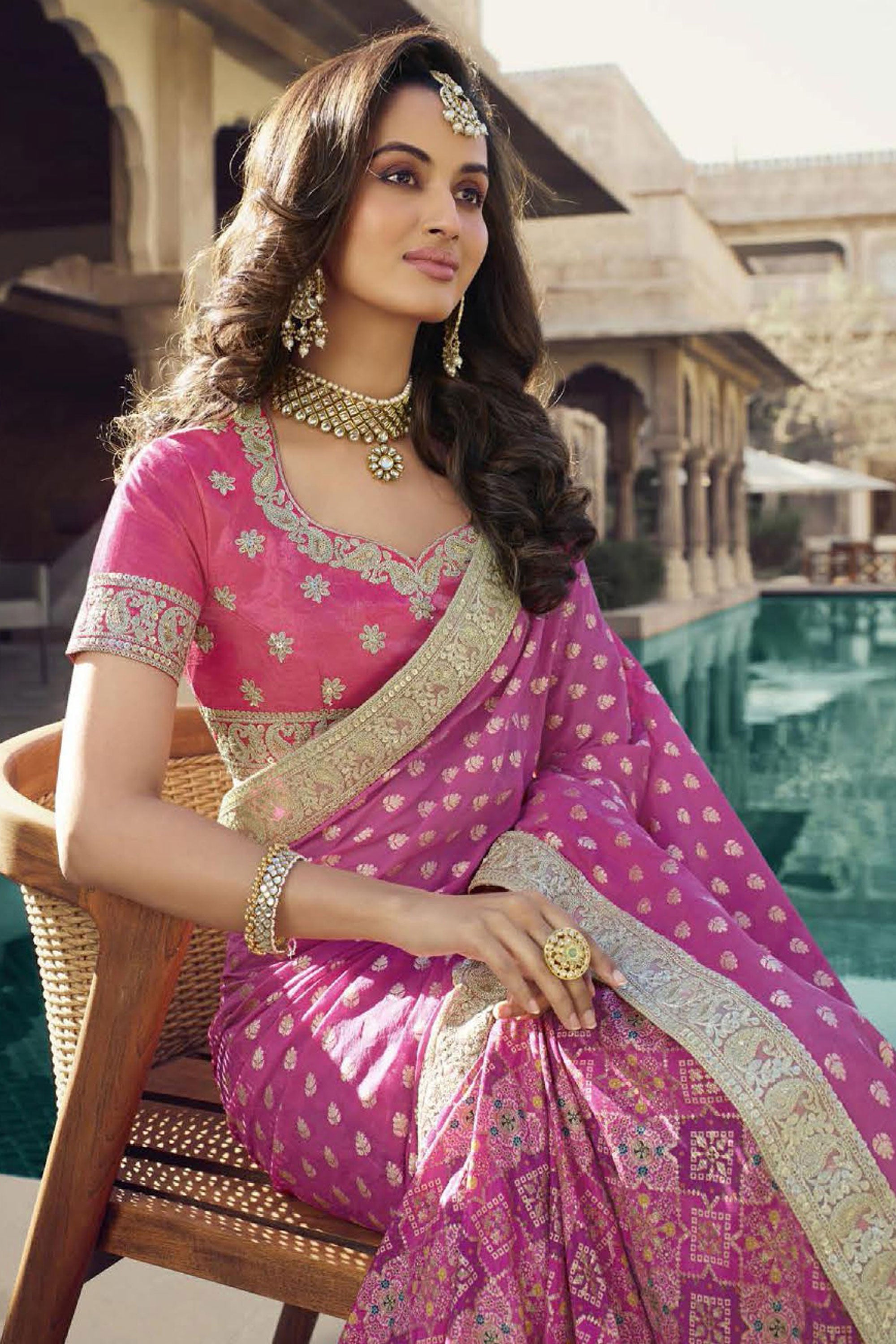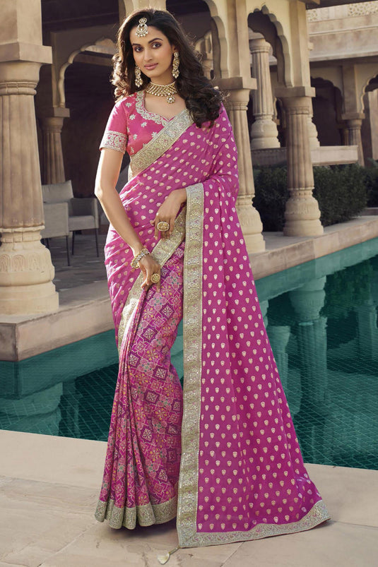 Classic Lace Zari Work On Pink Color Printed Saree In Art Silk Fabric