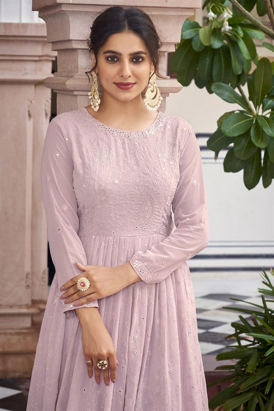 Classic Pink Color Embroidered Georgette Readymade Anarkali Suit