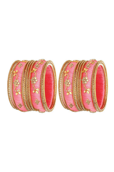 Classy Customized Designer Silk Thread Bangles Set In Pink