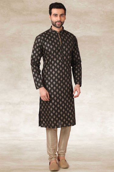 Cotton Fabric Festival Wear Readymade Black Color Stright Kurta Pyjama