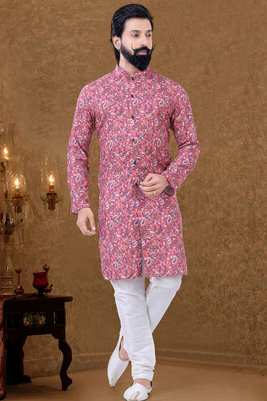 Cotton Fabric Sangeet Wear Luxurious Kurta Pyjama In Pink Color