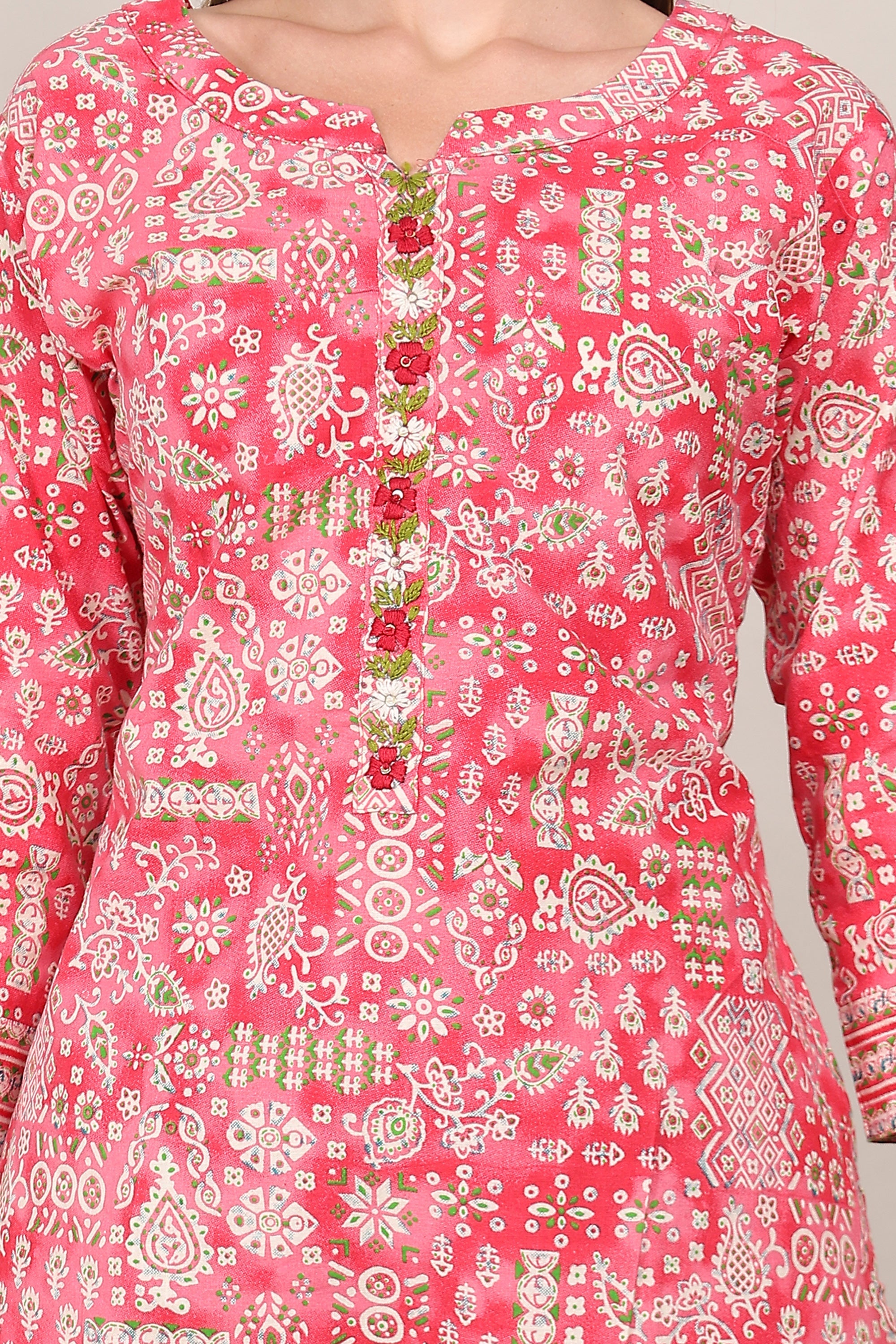 Cotton Pink Color Daily Wear Readymade Plus Size Kurti