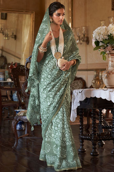 Cotton Printed Sea Green Saree