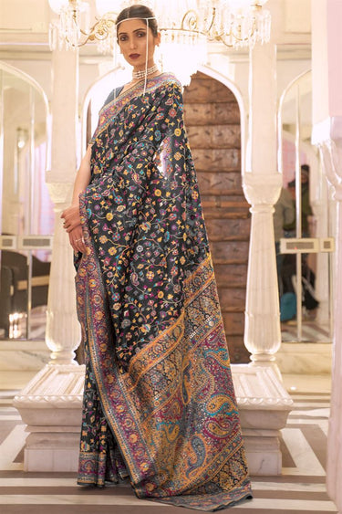 Cotton Silk Fabric Festival Wear Black Color Striking Saree With Weaving Work