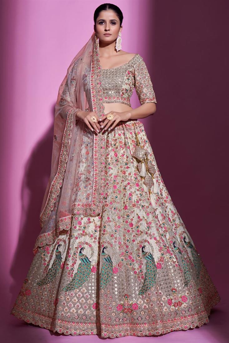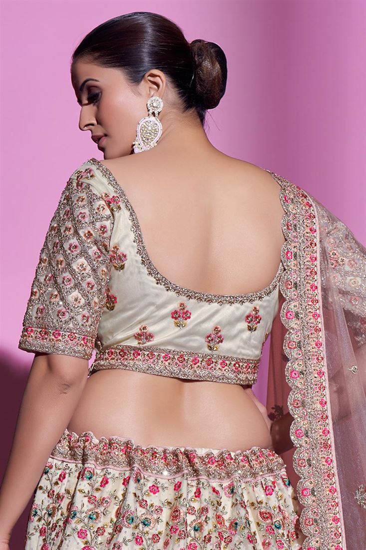 Cream Color Net Fabric Wedding Wear Stylish Lehenga Choli