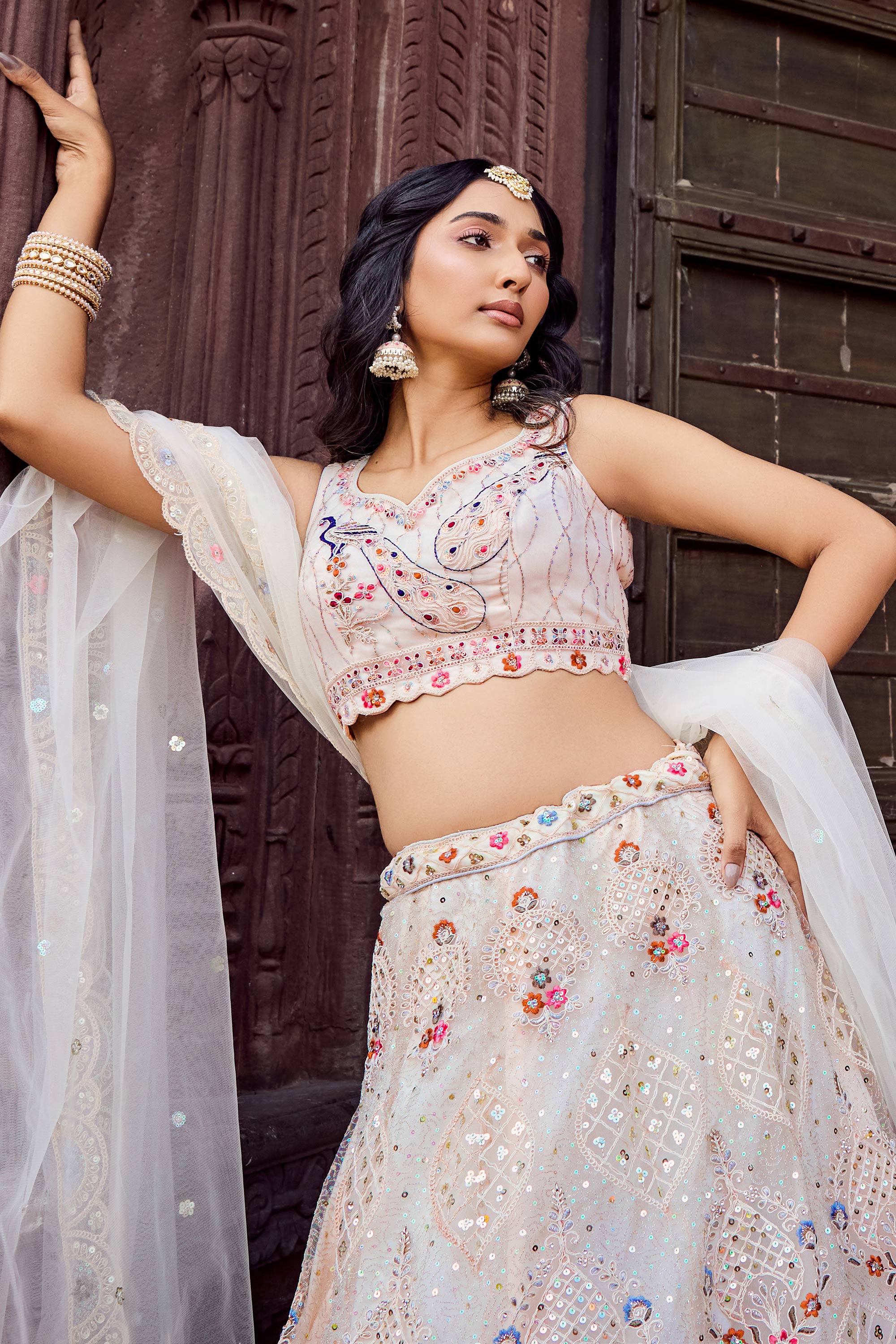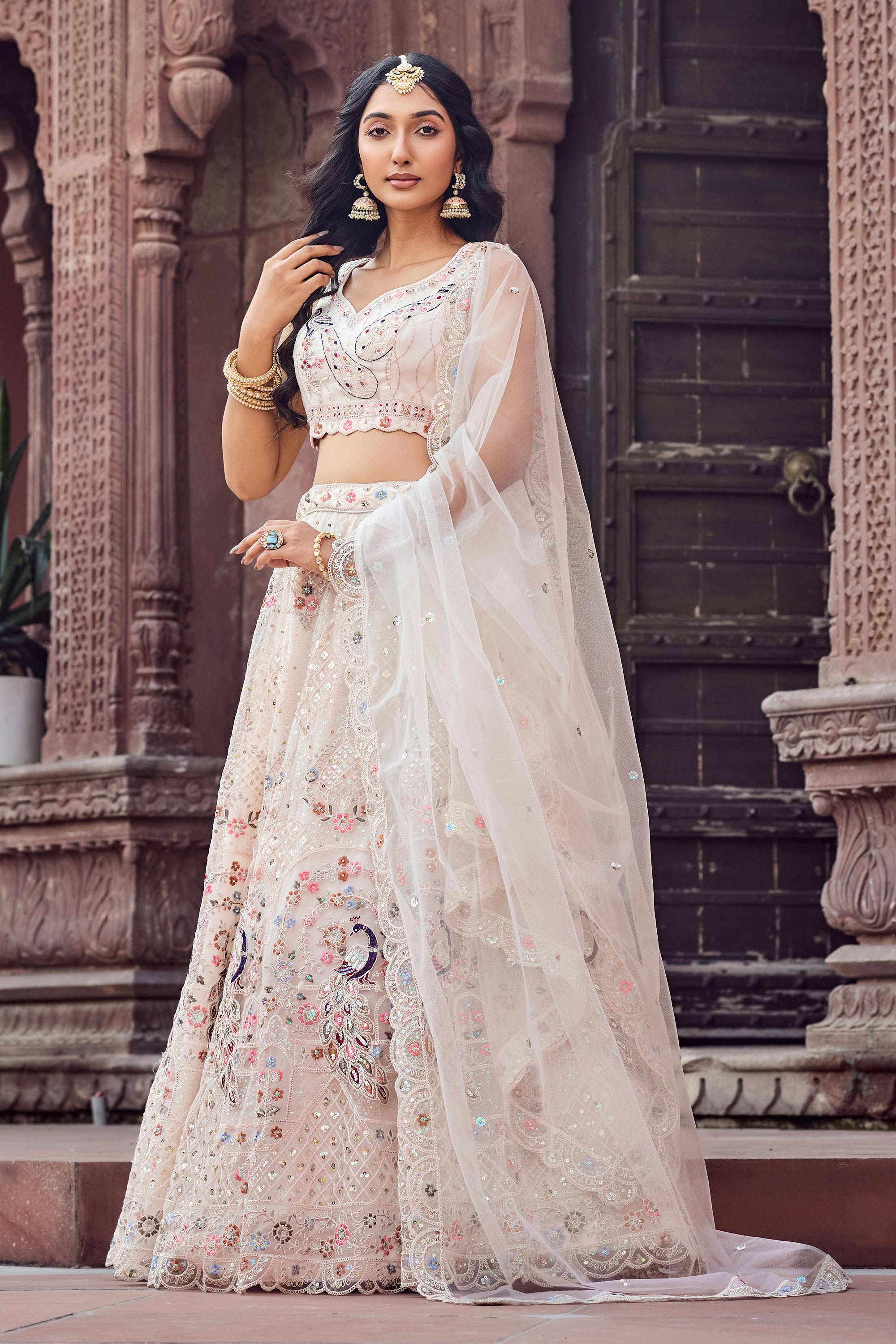 Cream Wedding Wear Embroidered Lehenga Choli With Dupatta