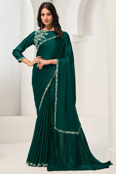 Creative Green Color Crepe Satin Silk Fabric Saree