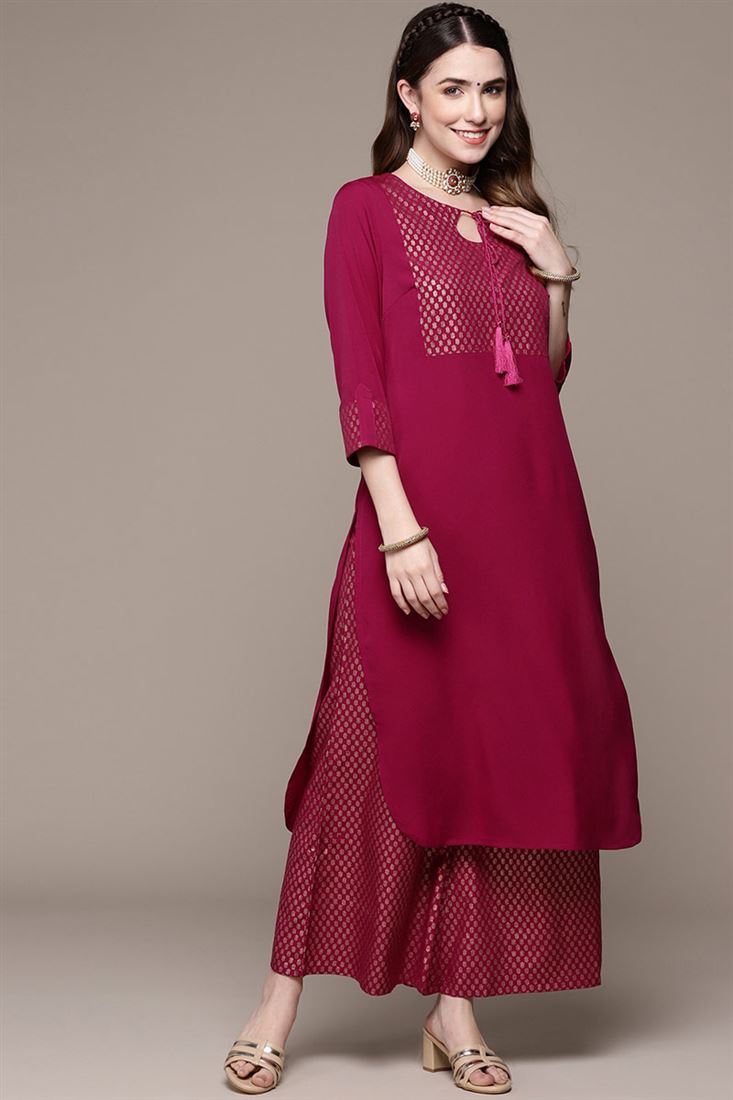 Crepe Fabric Magenta Color Casual Wear Posh Kurti With Palazzo Set