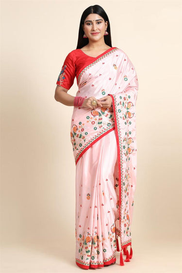 Crepe Silk Fabric Festival Wear Patterned Embroidered Work Saree In Pink Color