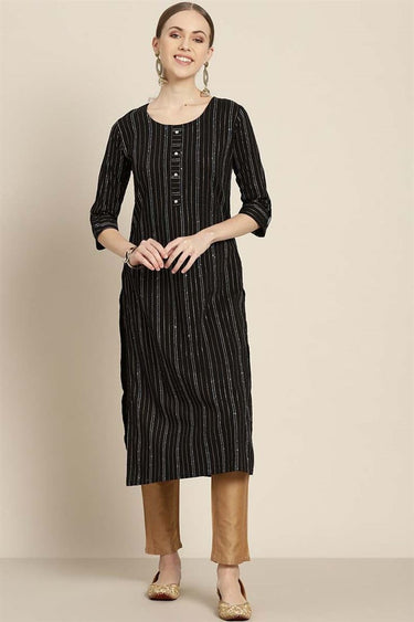 Daily Wear Black Color Fetching Kurti In Cotton Fabric