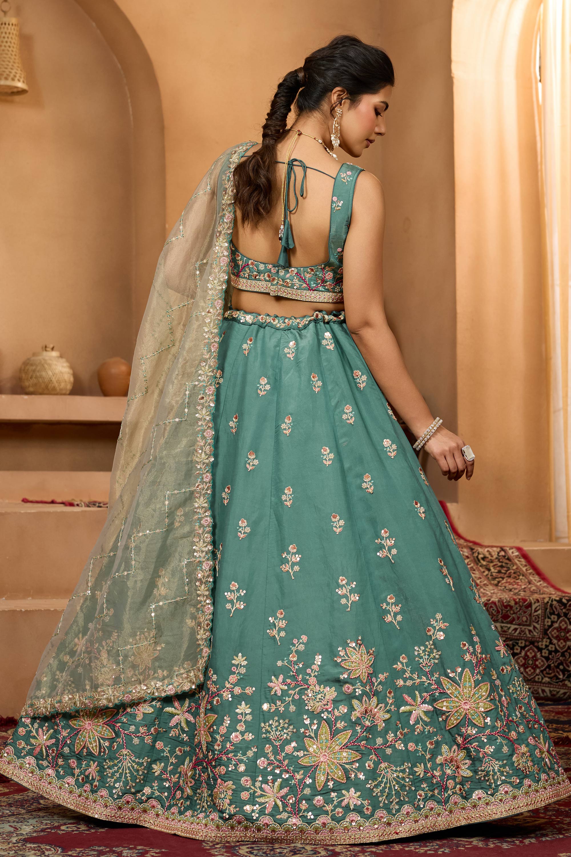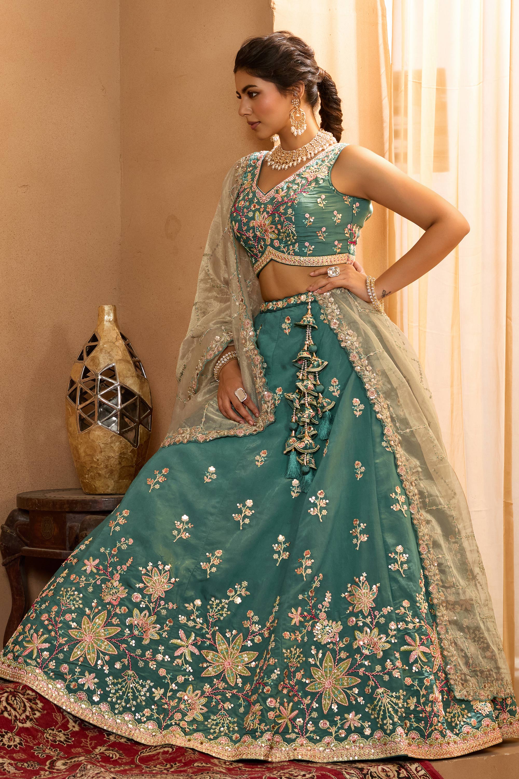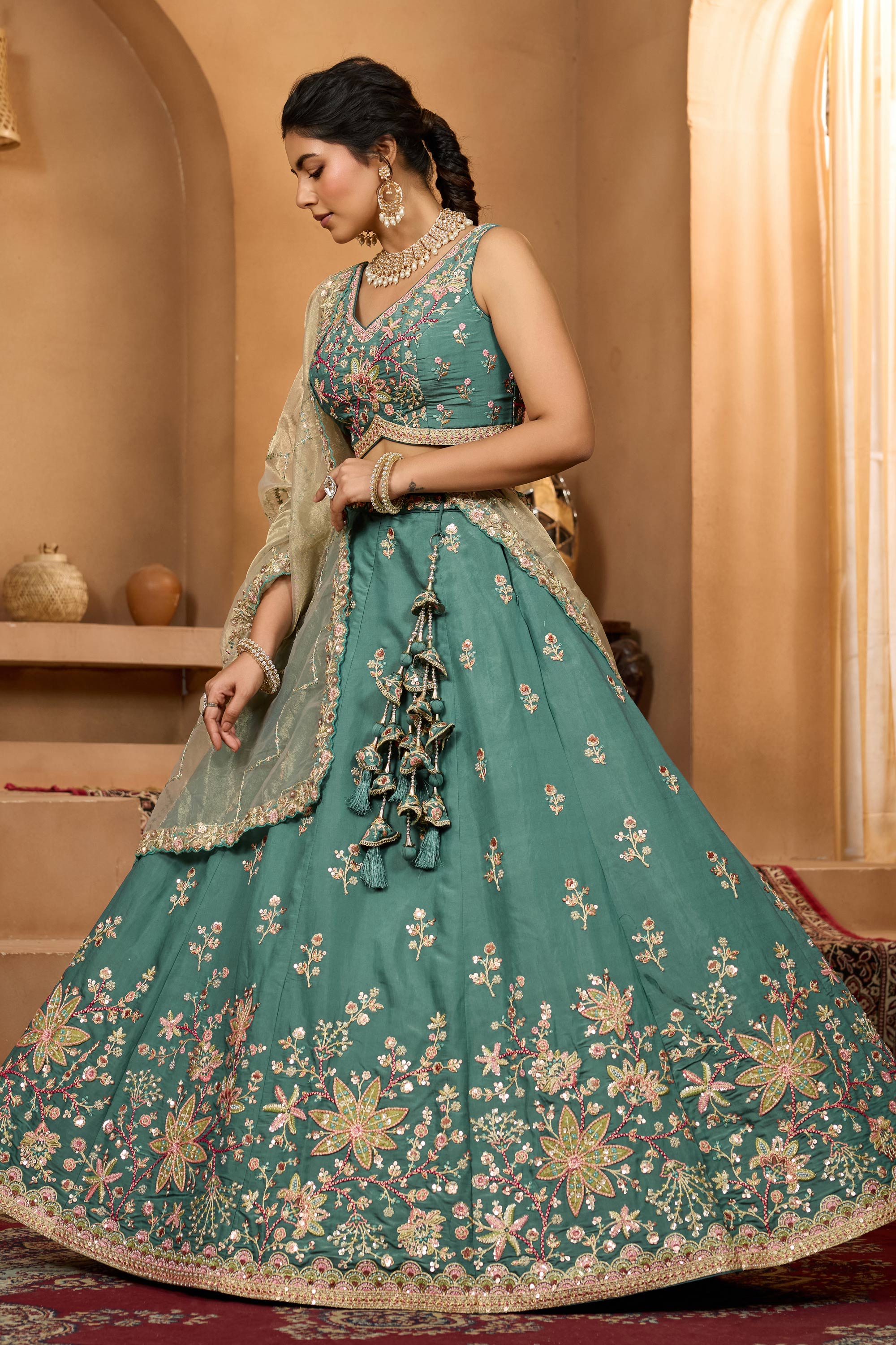 Dark Cyan Wedding Wear Georgette Lehenga Choli