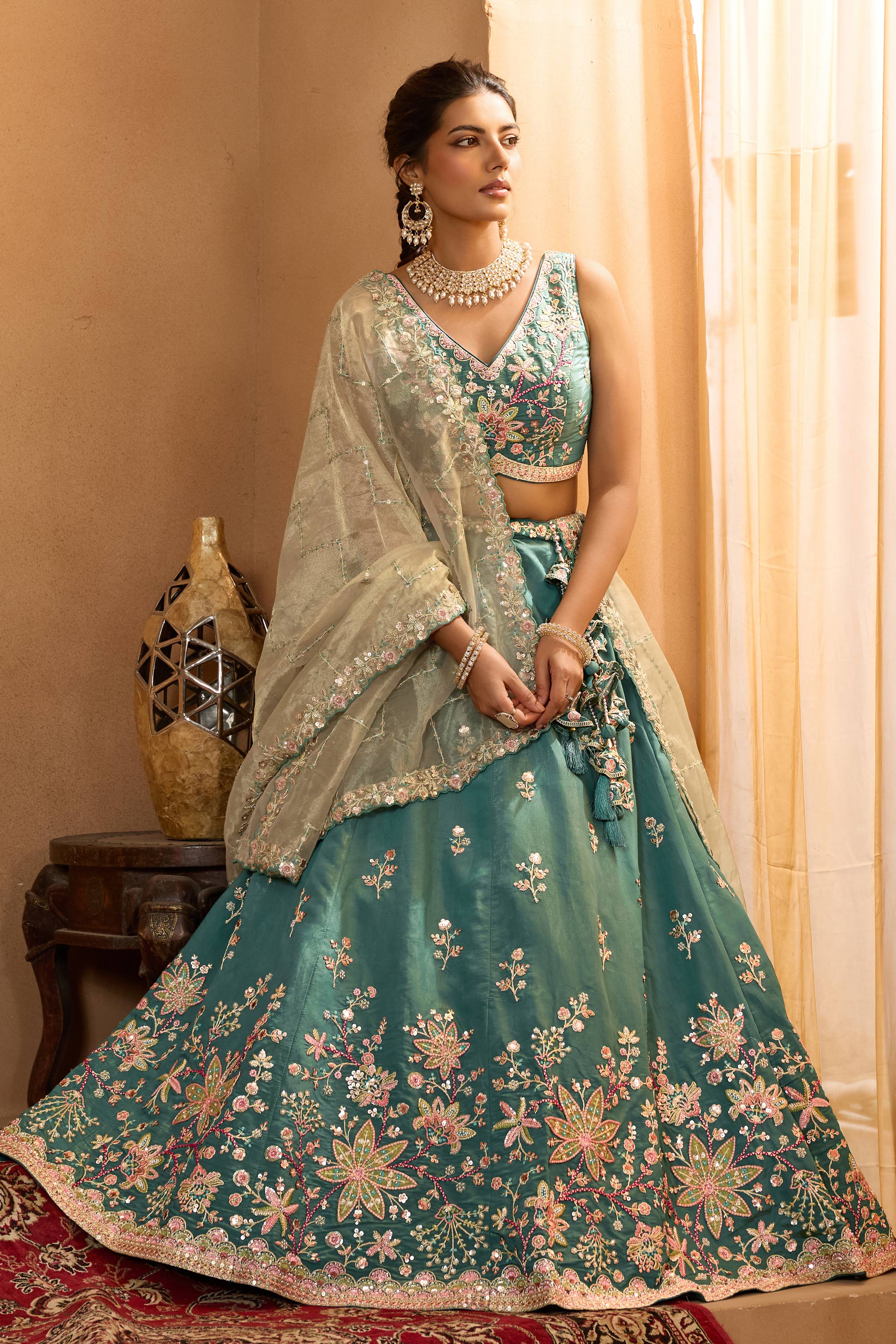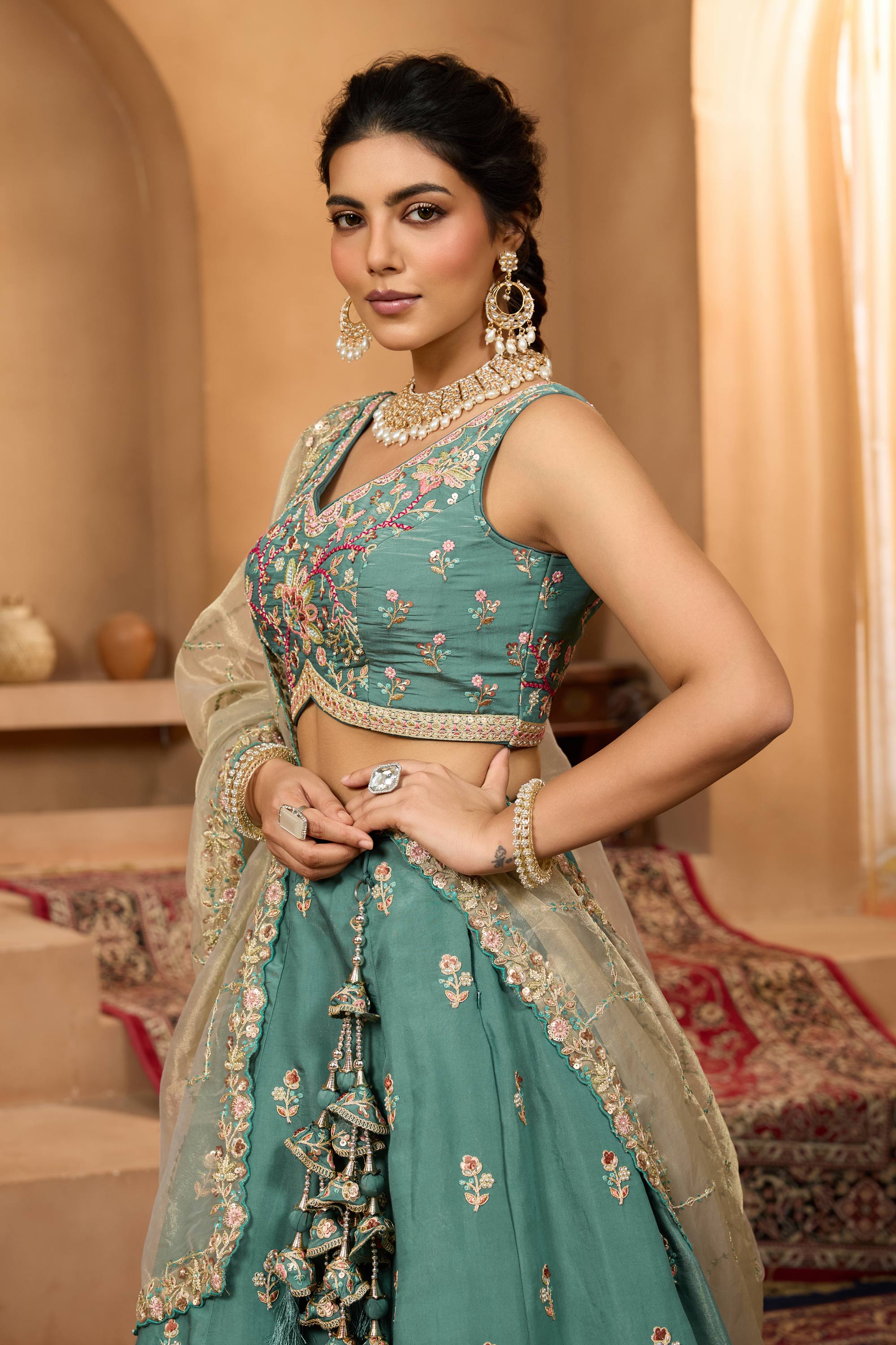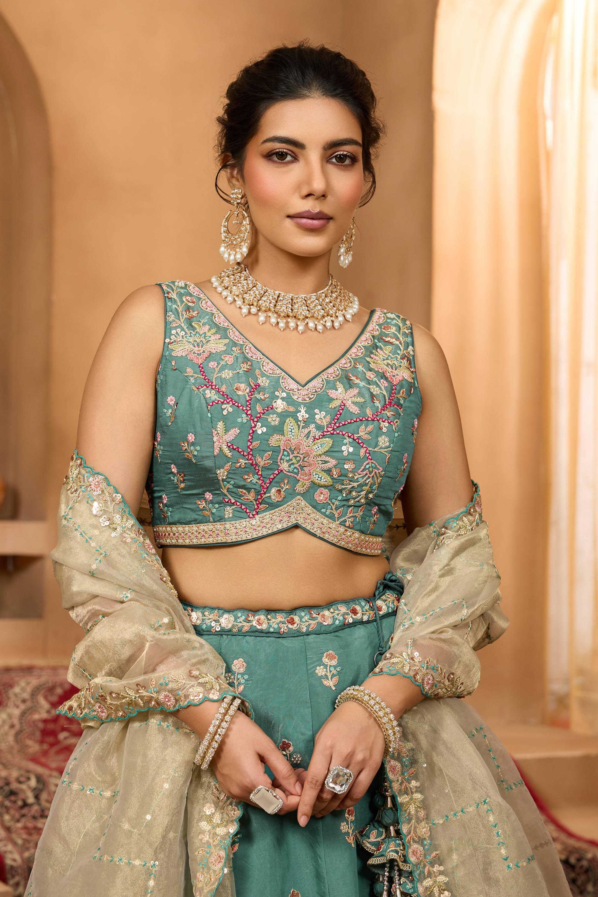 Dark Cyan Wedding Wear Georgette Lehenga Choli