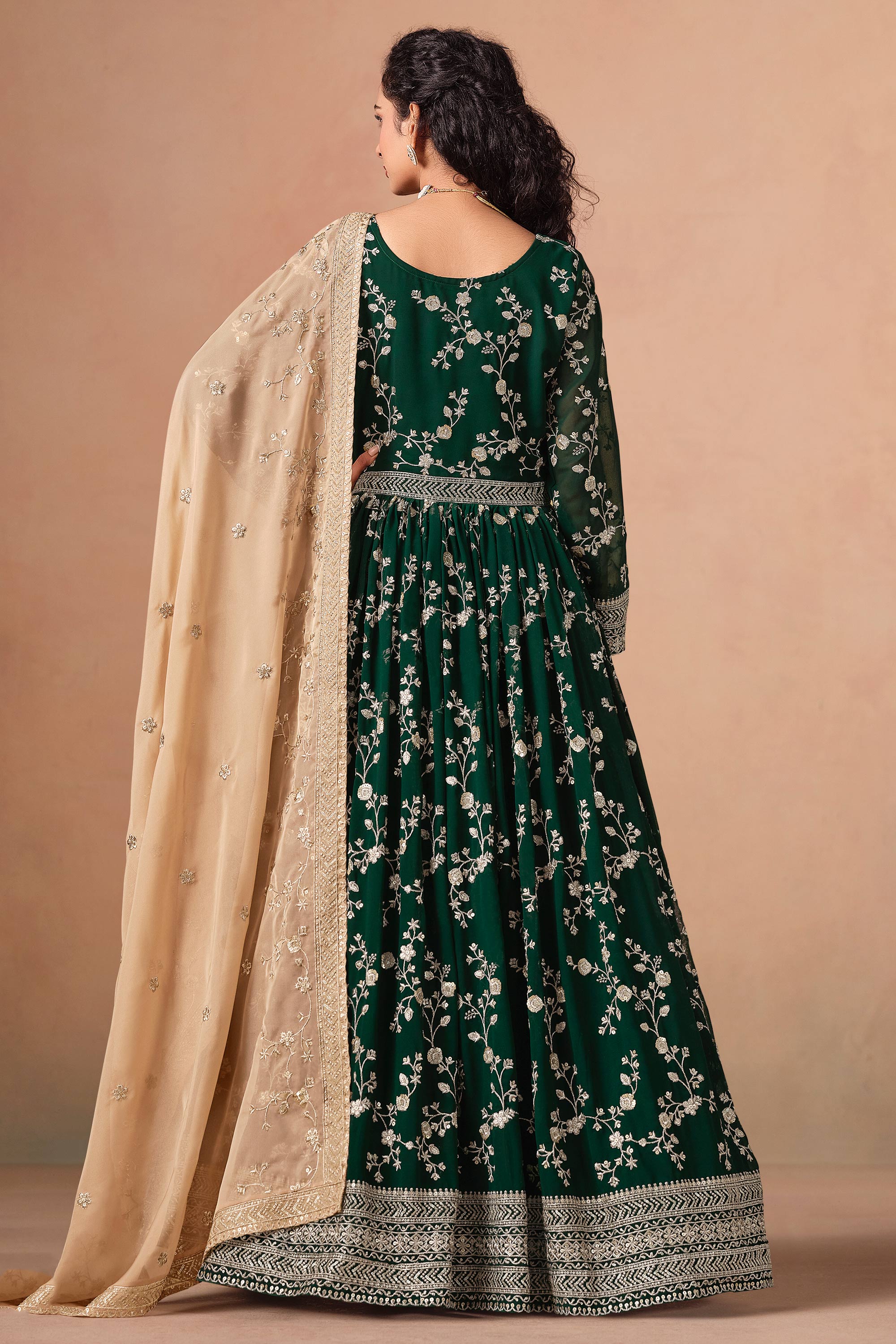 Dark Green Faux Georgette Anarkali Suit With Dupatta