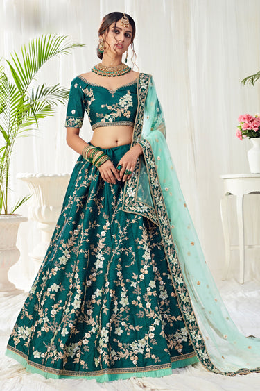 Dark Green Silk Fabric Wedding Wear Embroidered Designer Lehenga Choli