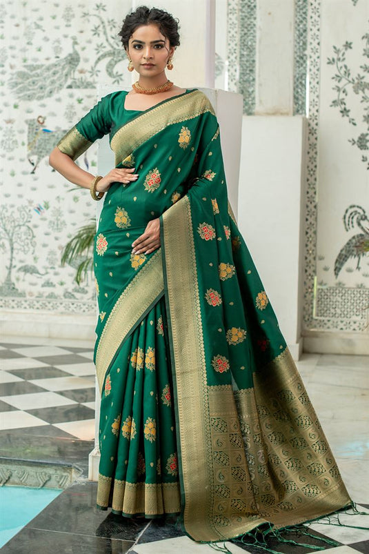 Dark Green Woven Silk Saree