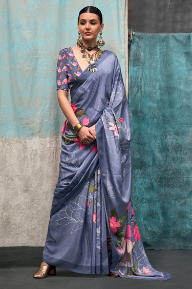 Dark Grey Color Exquisite Casual Wear Printed Crepe Fabric Saree