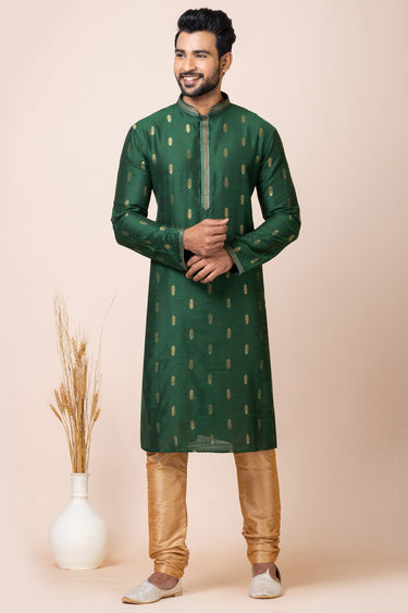 Dazzling Green Color Readymade Kurta Pyjama In Jacquard Fabric