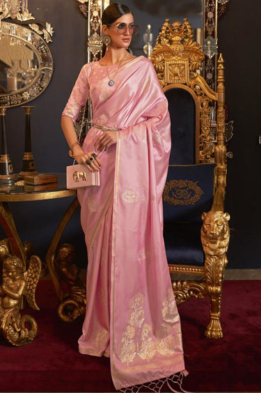 Dazzling Satin Silk Fabric Weaving Work Pink Wedding Wear Saree