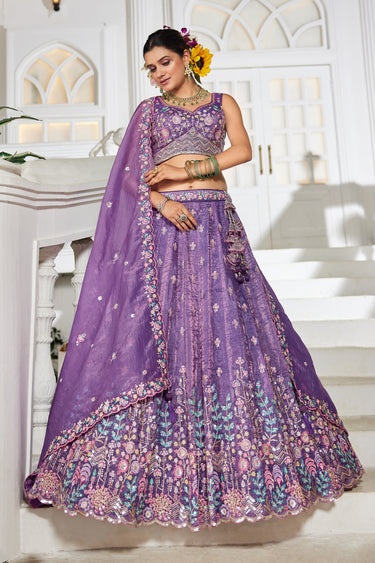 Deep Purple Pure Tissue Heavy Embroidered Wedding Lehenga Choli