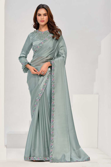 Step into the spotlight with this exquisite party wear saree crafted from luxurious Crepe Satin Silk. Designed to make a statement, this saree features dazzling sequins work paired with intricate handwork, adding a touch of sophistication and artistry to your ensemble. Perfect for functions and parties, this saree embodies elegance and charm, ensuring you stand out on every occasion. The smooth, flowing fabric drapes gracefully, while the shimmering embellishments reflect your impeccable style. Note: Slight color variations may occur due to digital photography. Turn heads and dazzle the night away with this timeless masterpiece!