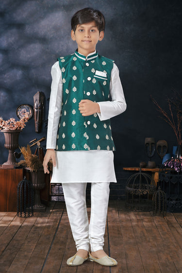 Designer Readymade Kurta Pyjama For Boys In Off White Color