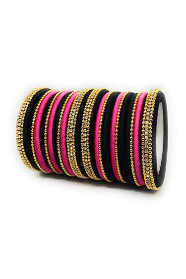 Designer Silk Thread Handmade Bangle Jewellery In Black And Rani Color