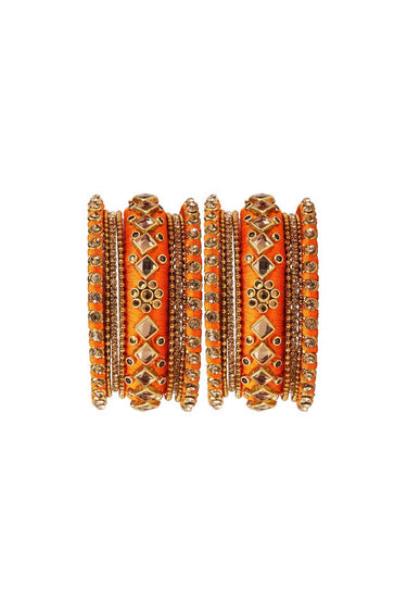 Designer Wedding Wear Silk Thread Handmade Bangles Set In Orange