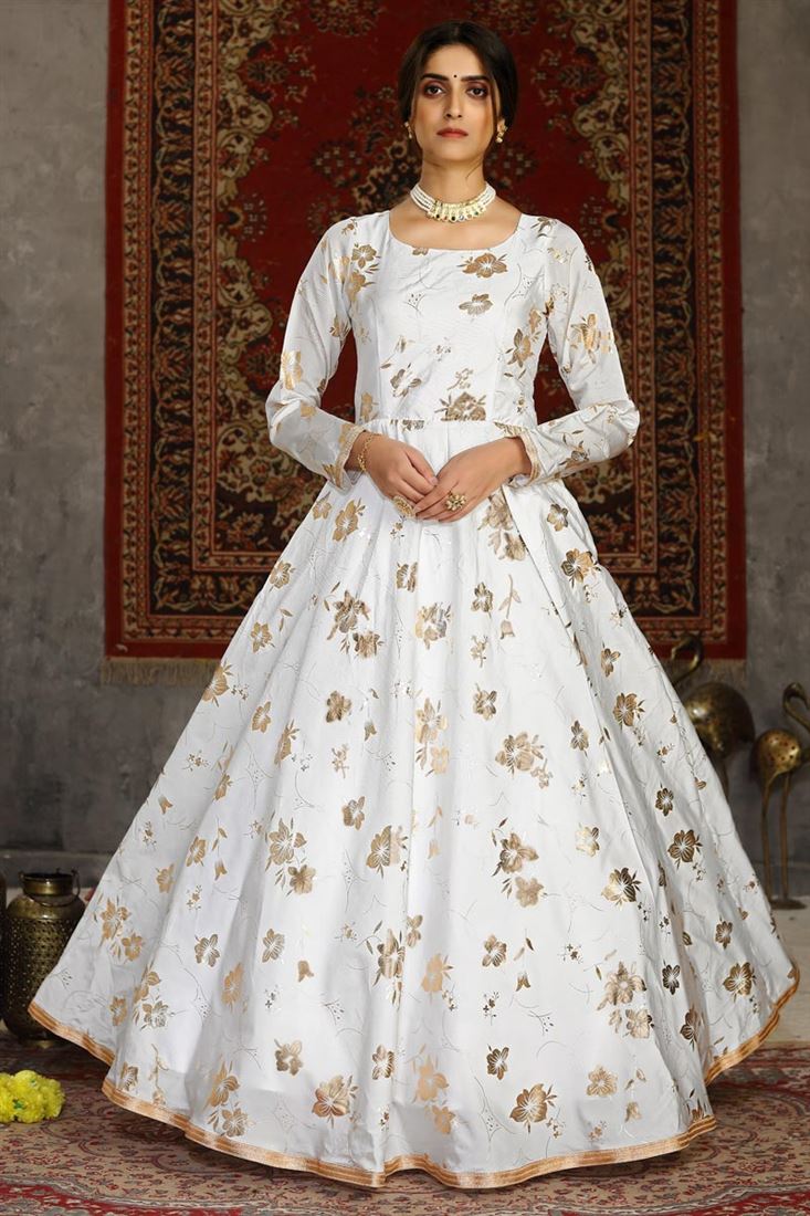 Designer White Color Party Style Fancy Work Taffeta Fabric Gown