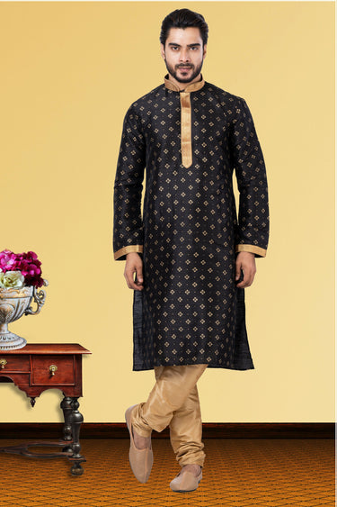 Dhupion Fabric Black Magnificent Readymade Men Kurta Pyjama For Sangeet Wear