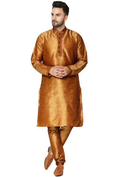 Dhupion Silk Fabric Dark Beige Color Festival Wear Kurta Pyjama For Men