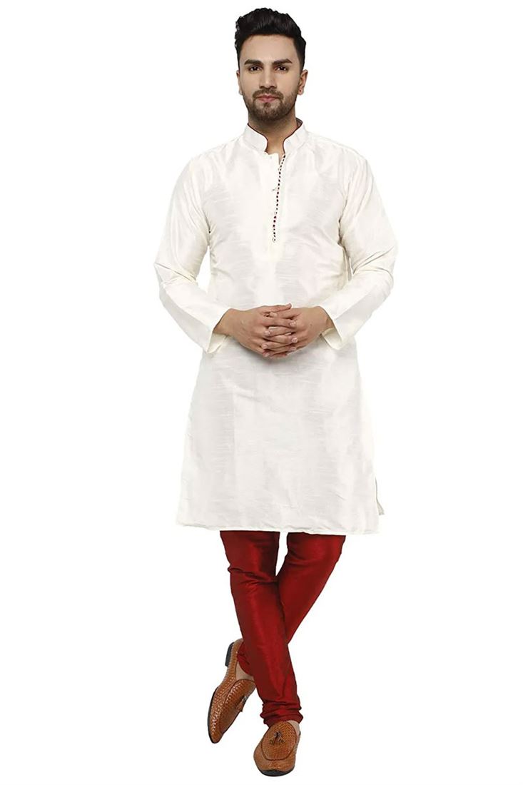 Dhupion Silk Fabric White Color Festival Wear Kurta Pyjama