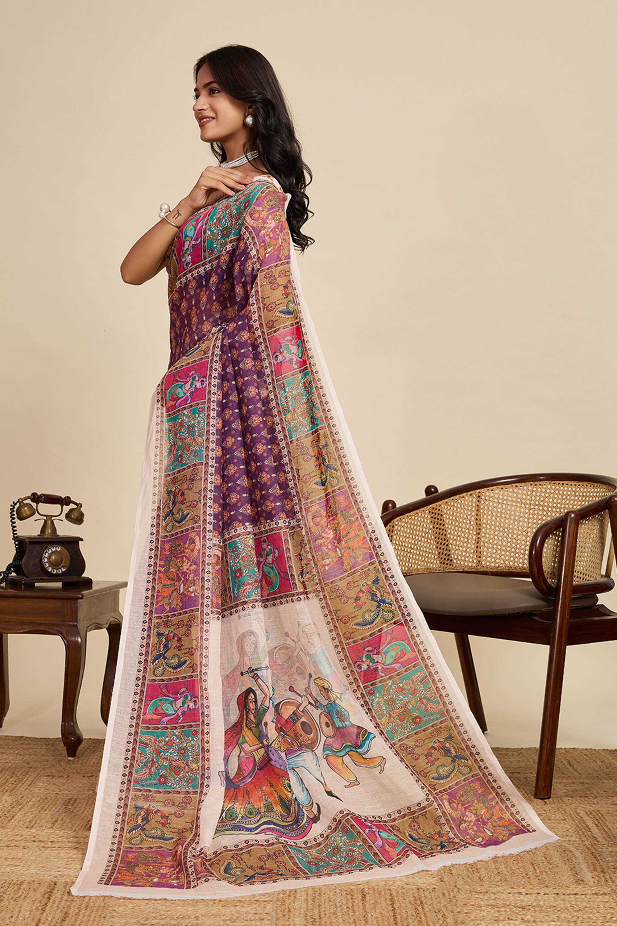 Digital Printed Linen Purple Casual Wear Saree