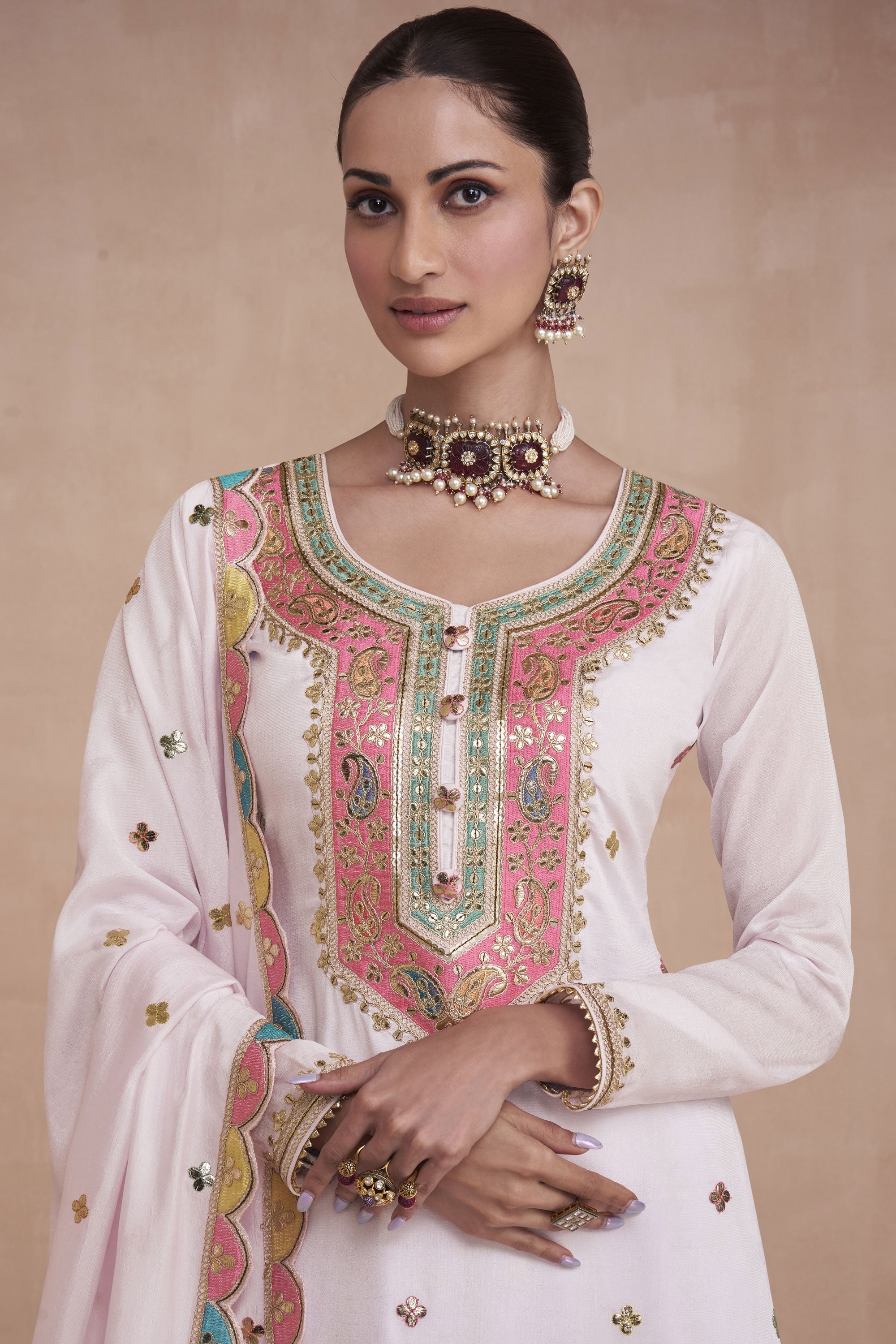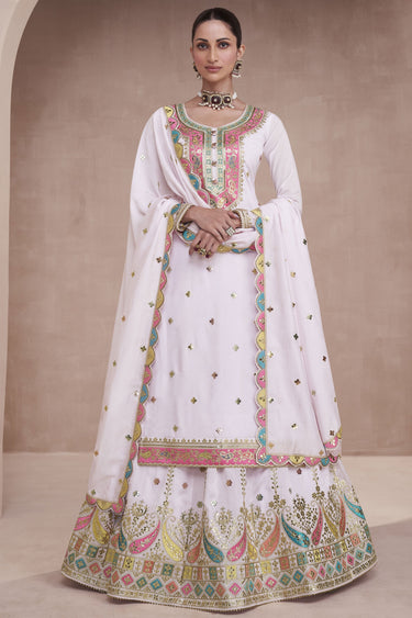 Diksha Singh Art Silk Fabric Charismatic Readymade Sharara Top Lehenga In White Color