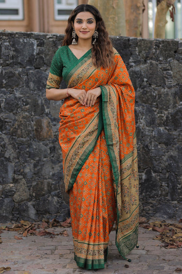 Dola Silk Fabric Printed Patola Orange Color Saree