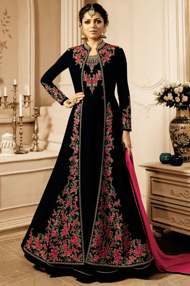 Drashti Dhami Black Embroidered Anarkali Suit For Party Wear