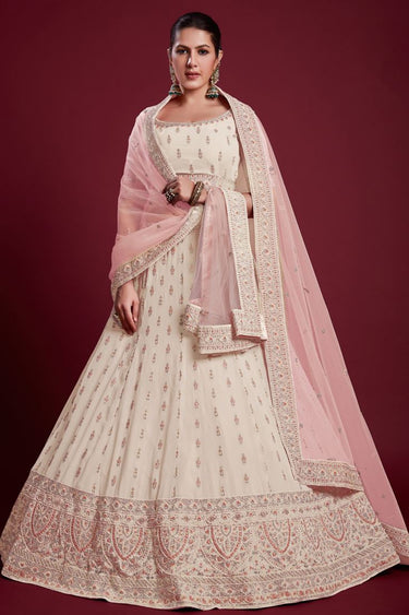 Elegant Georgette Off White Lehenga with Embroidered for Traditional Events