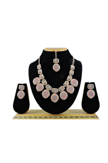 Elevate your elegance with the Pretty Stone Alloy Necklace Set for girls and women. This premium classic function wear comes complete with a pair of earrings and a mang tikka. The exquisite design is beautifully executed using superior alloy material, making it a perfect imitation jewellery choice for your wardrobe. A shimmering stone embellishment adds a lavish finish, ensuring you stand out at every function you attend.