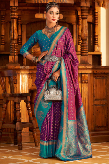 Elegant Purple Banarasi Art Silk Saree With Contrasting Blouse