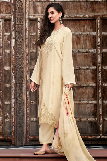 Embroidered Beige Color Salwar Kameez In Viscose Fabric