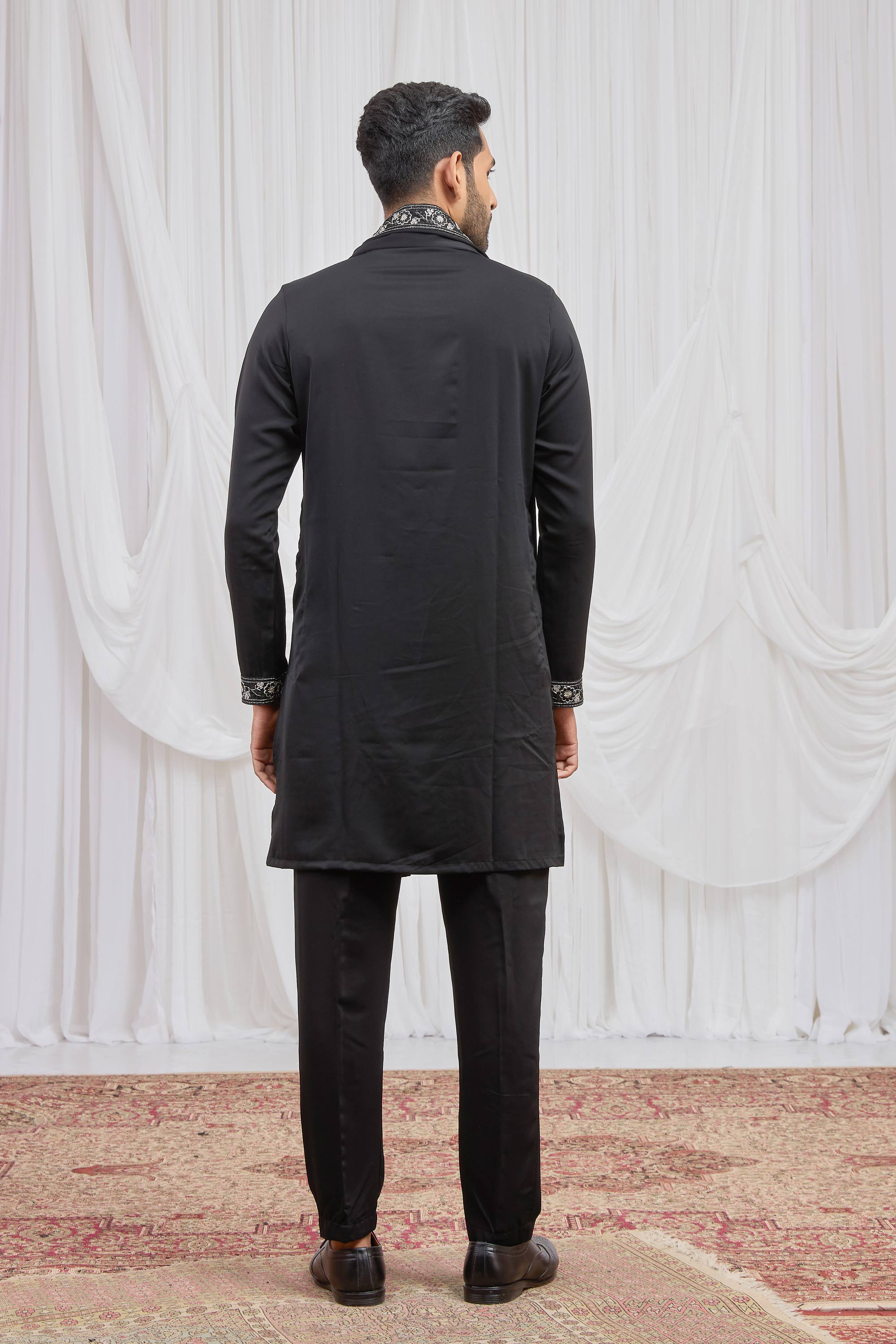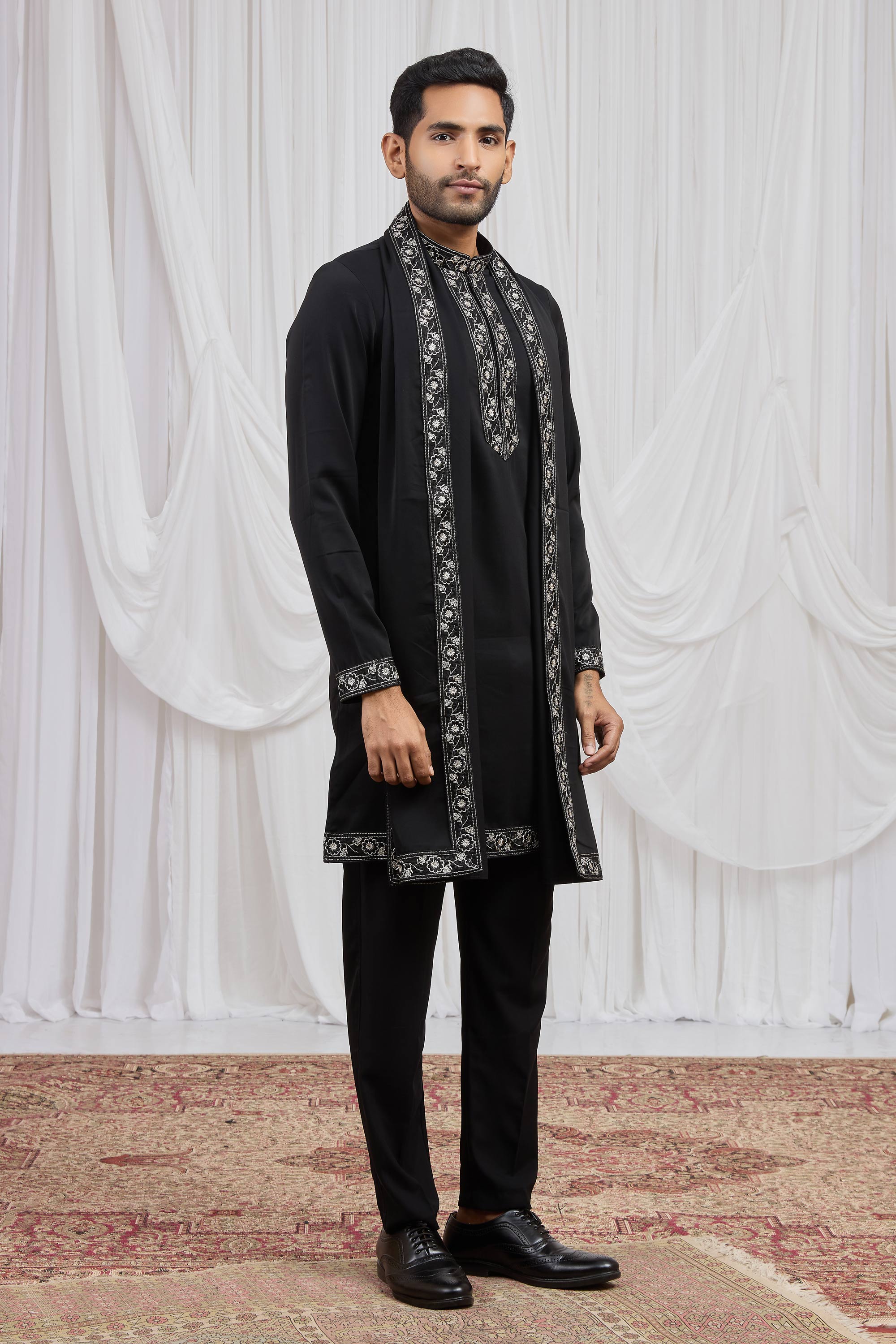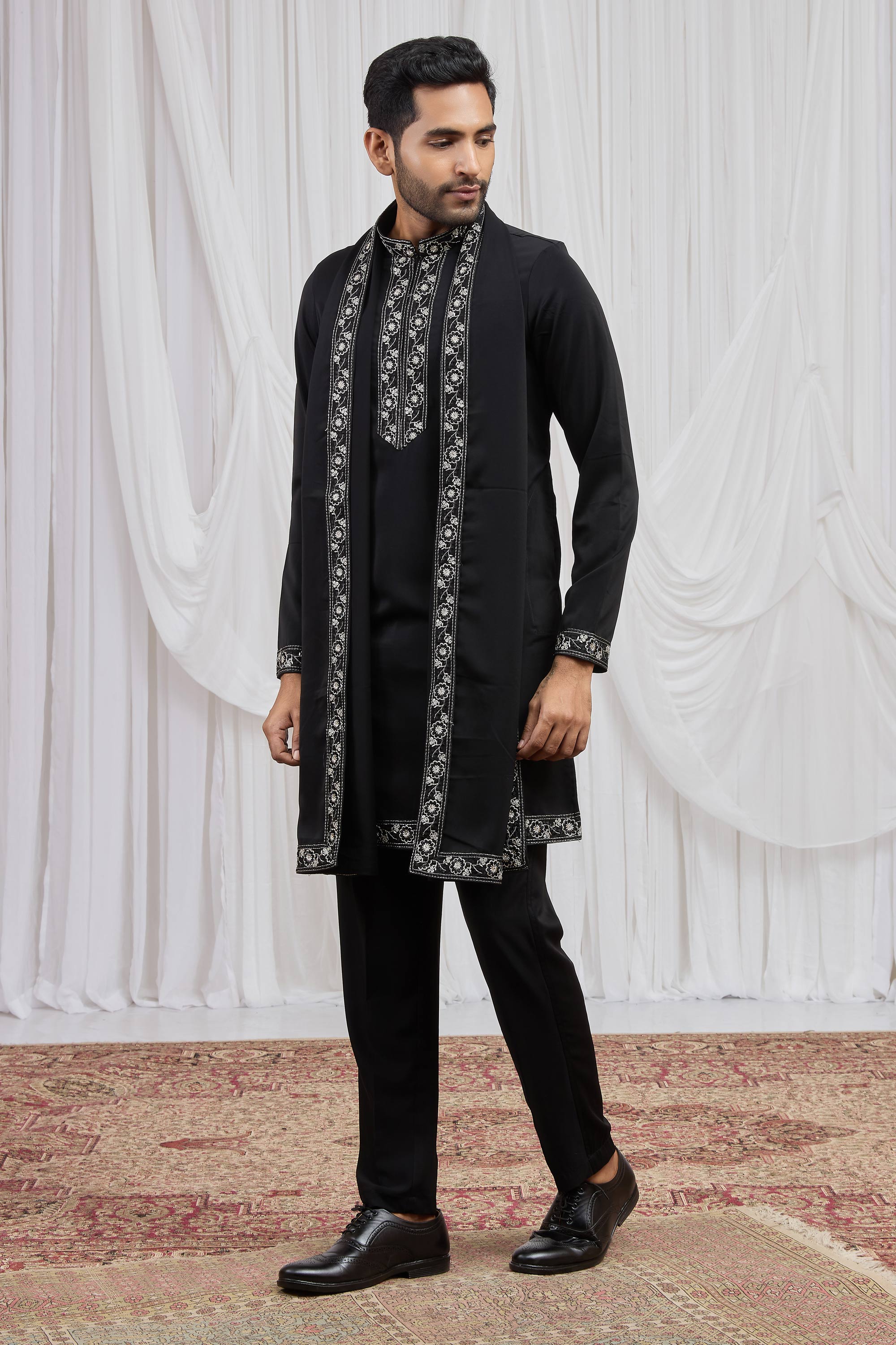 Embroidered Black Function Wear Readymade Kurta Pyjama With Dupatta For Men