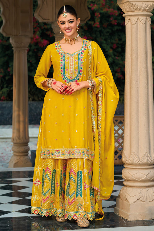 Embroidered Chinon Purple Designer Readymade Palazzo Salwar Kameez