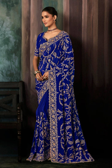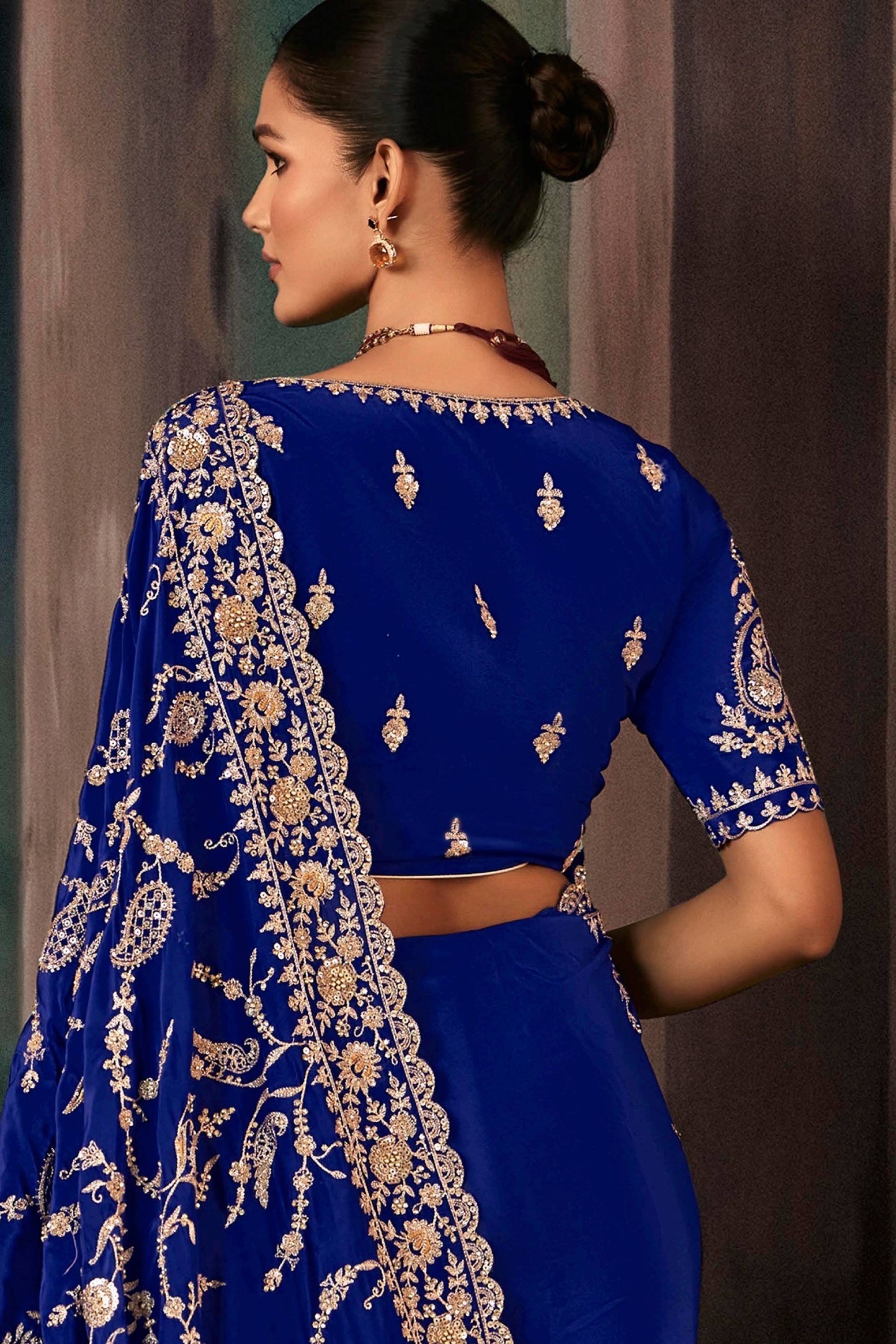 Embroidered Fancy Fabric Blue Wedding Wear Saree