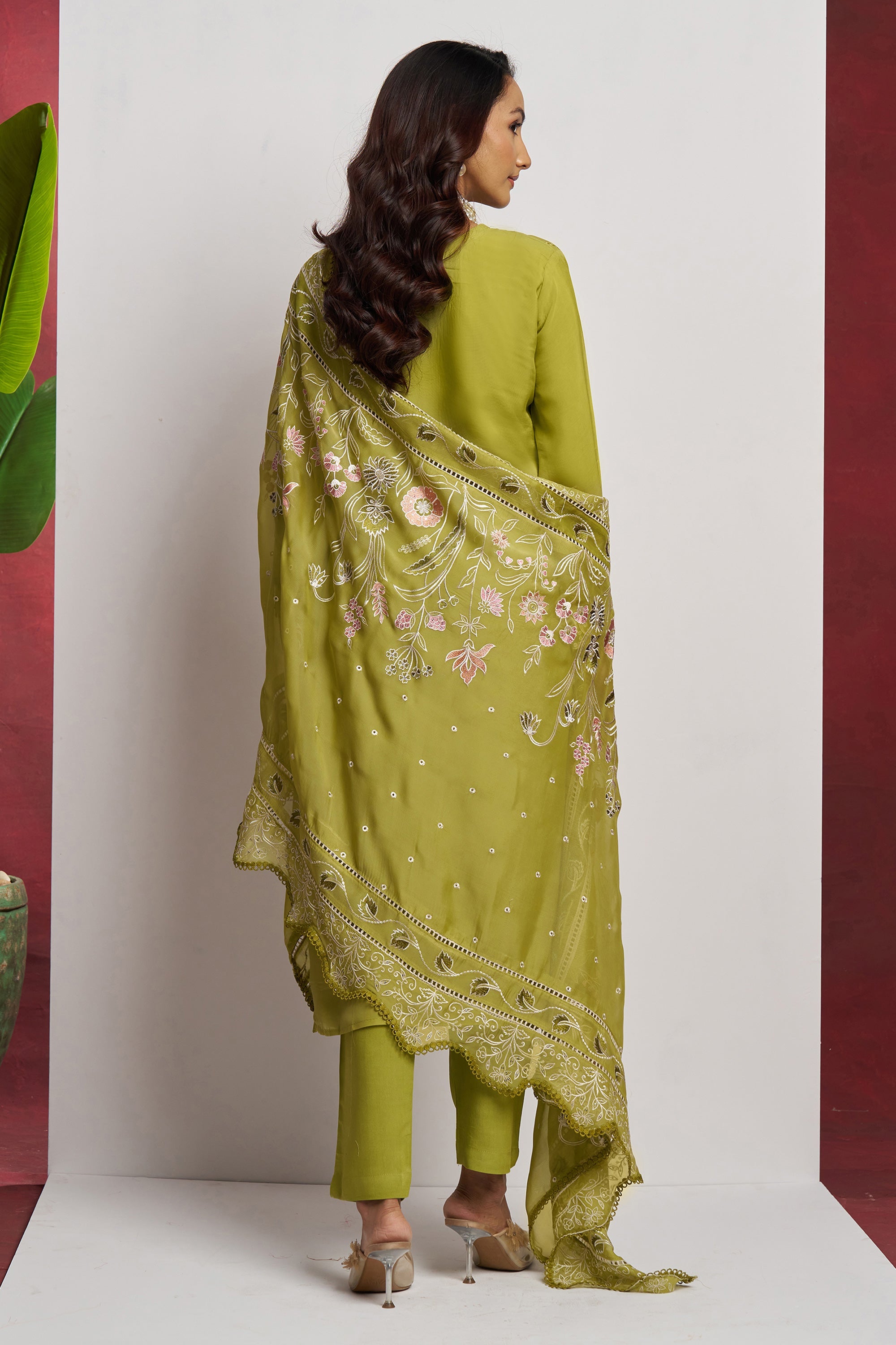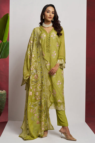 Embroidered Green Color Salwar Kameez In Organza Fabric