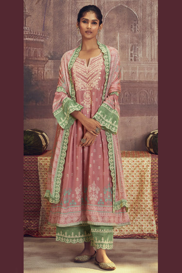 Embroidered Muslin Fabric Palazzo Suit In Peach Color