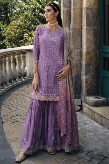Embroidered Purple Color Function Wear Readymade Palazzo Salwar Suit In Chinon Fabric